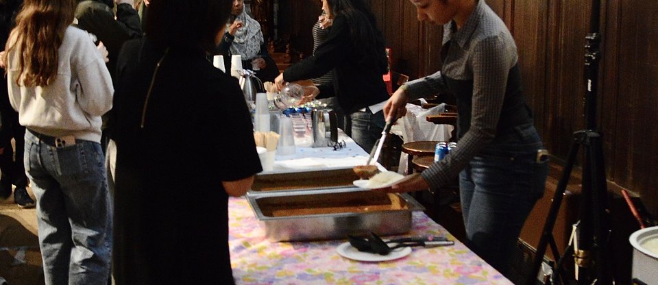 Because the Delegates Assembly took place during the holy month of Ramadan, dates and glasses of water were handed out to those of Islamic faith to break their fast at 17:39pm, led by Father Josh Harris and Dr Mahera Ruby. A time for prayer and reflection was given for everyone to pray and contemplate, and a Dua was given; this is the act of calling upon Allah to seek comfort, ask for needs, and express gratitude. Leaders were then given prompt questions for self-reflection, to consider our own direction, purpose, and movement. This is done to seek wisdom together as boroughs on how to act for the community. Once reflections were finished, Iftar began. Students from Queen Mary University London and Northeastern University helped by serving everyone their meals, and TELCO leaders sat, spoke, and ate together, kicking the evening off with a positive, warm feeling of community.