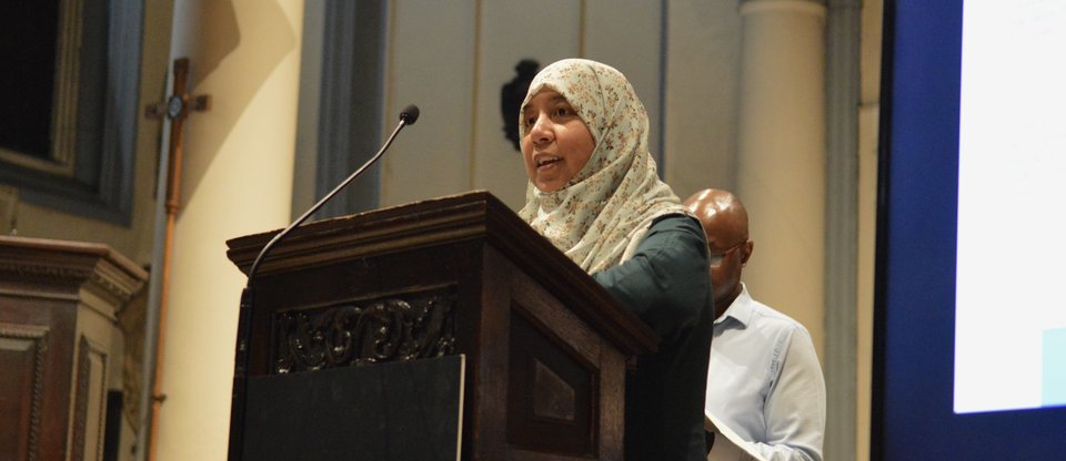 Building on this, Father Josh provided stated “for all of us fundamentally as people of faith or not, dignity is not granted by creed, passport, or race. It is inherent. It is founded on a shared commitment to human worth”. There was a clear sense of motivation and energy in the room, with members of the audience taking photos and videos to remember a space where faith can be shared. After this initial welcome, the audience was greeted by three co-chairs, Keisha, Sufia, and Averil, and reaffirmed the central message of coming together despite differences, or in Sufia’s words “organised, disciplined, joyful resistance to injustice”.