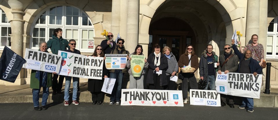 In March 2026, the London Borough of Barnet accredited as a Living Wage Employer. Our campaign had served its function and the campaign team celebrated at the Town Hall bestowing flowers and cards on the members of the Health and Wellbeing Board who were present.